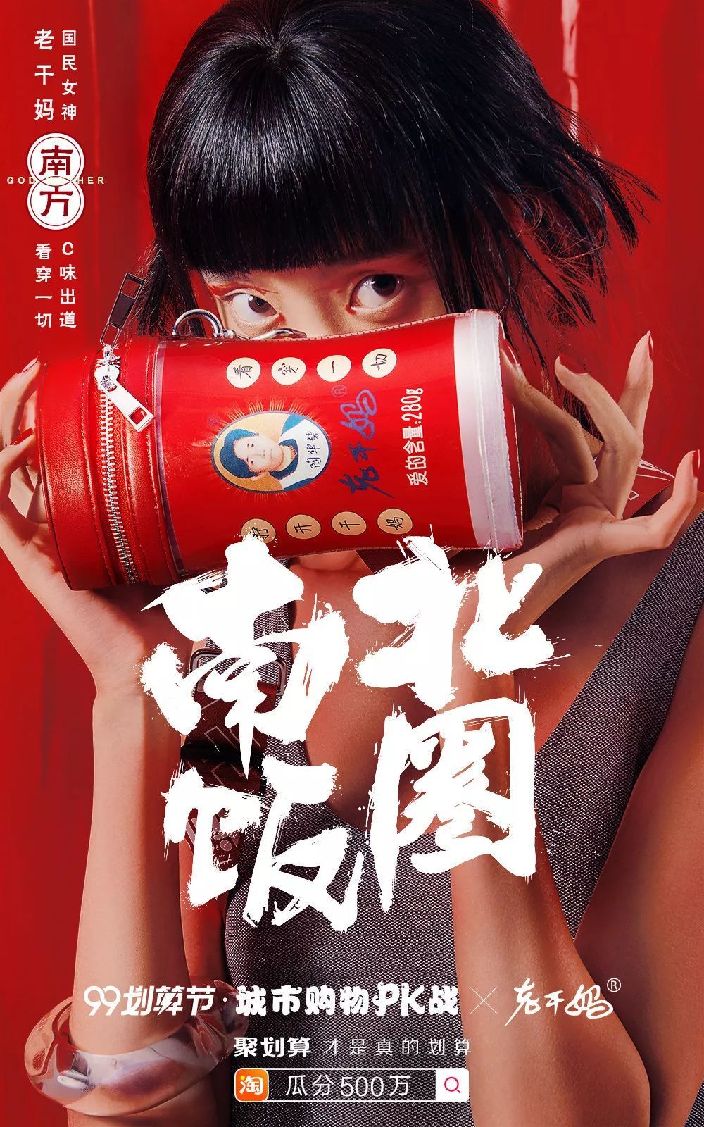 MV在網上流出后,微博話題#老干媽擰瓶舞#也瞬間火了。除了拍攝廣告,老干媽聯合聚劃算發起#南北飯圈#的話題,讓國民女神老干媽代表南隊發聲。對此打造了一組土味潮的海報,順勢推出老干媽禮盒和土搖包,傳遞了老干媽「看穿一切,C味出道」。借助具有地域差異的話題展開味道PK,吸引受眾為#南北飯圈#站隊。從側面再次帶出了老干媽的聚劃算活動,為線上電商活動引流。既有效反哺了廣告片的長尾傳播,又形成了話題流量到電商銷售的營銷閉環。二、土味的不是廣告,而是老干媽的品牌形象