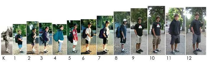 兒子從上學的第一天到高中畢業(yè),每年的開學季都會拍一張照片。