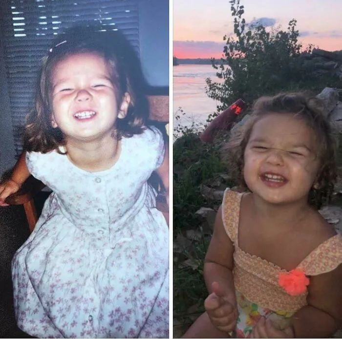 左圖是我的祖母在1955年拍攝的,右邊是現(xiàn)在的我,感嘆基因是如此的強大。