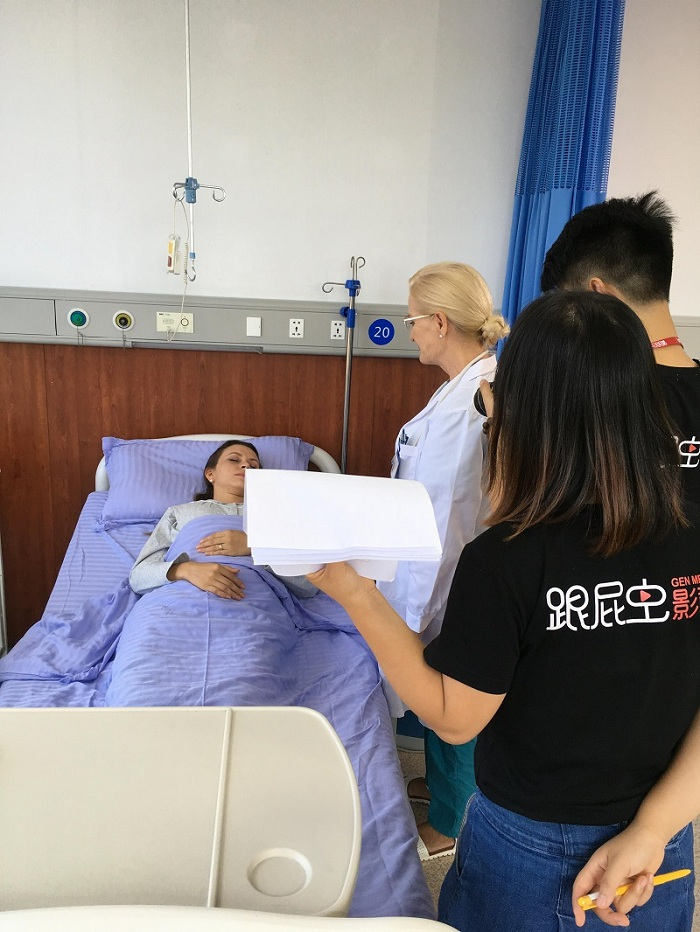 產婦是英國外模,醫生是捷克外模,加上拍攝團隊是純正中國人,三言兩語溝通不了,手舞足蹈發揮了作用。