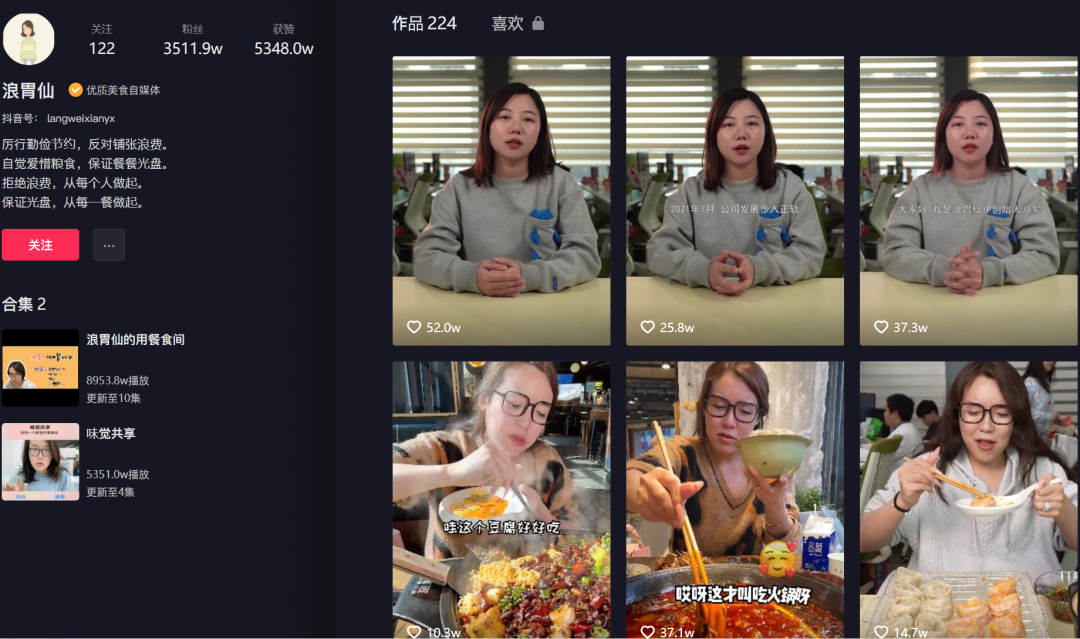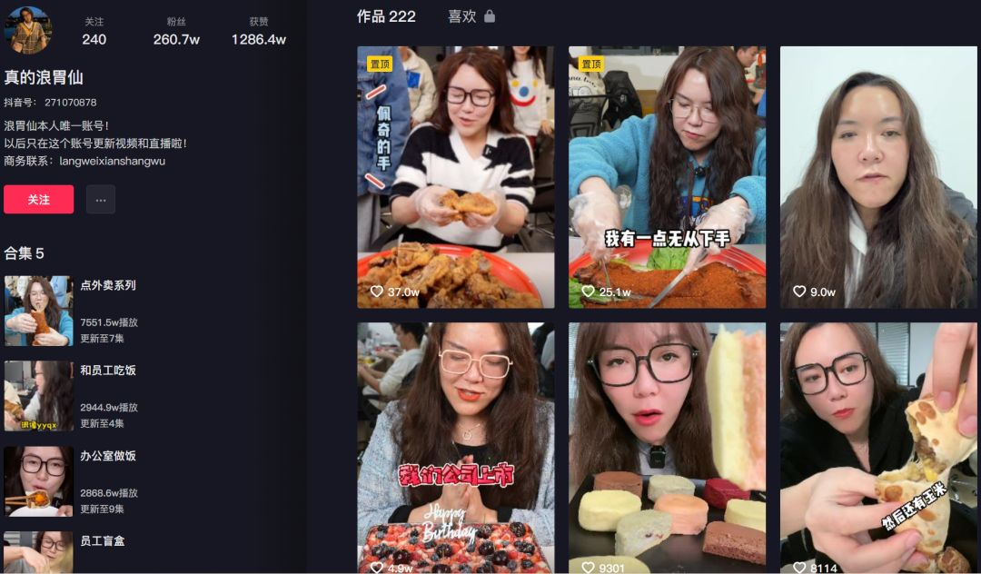 3月6日,已經(jīng)停更一月以上的抖音美食大號(hào)“浪胃仙”一連發(fā)布了三條視頻,只是,這次出鏡的并非“浪胃仙”本人,而是自稱“浪胃仙”IP創(chuàng)始人的游絮。