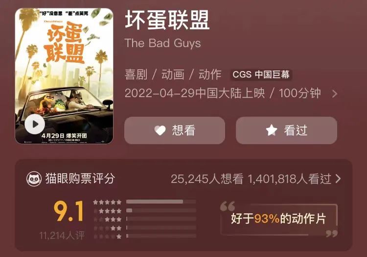 《壞蛋聯盟》全球票房已經累計1.2億美元,該片投資在6900~8000萬美元之間,成為自去年11月感恩節周末新片《魔法滿屋》以來第一部拿下北美周冠的家庭受眾動畫電影,該片普遍被認為是夢工場動畫近幾年來最佳作品。