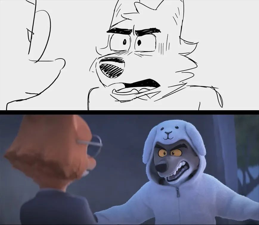 在動畫設計中,導演給每個角色都加入了一定的特點。比如大壞狼搖尾巴的設計。這種狼性的天真以搖尾巴這樣的設計展現出來,也十分令人動容。