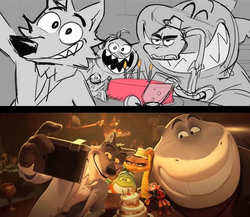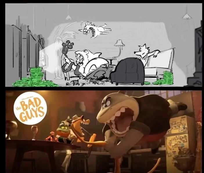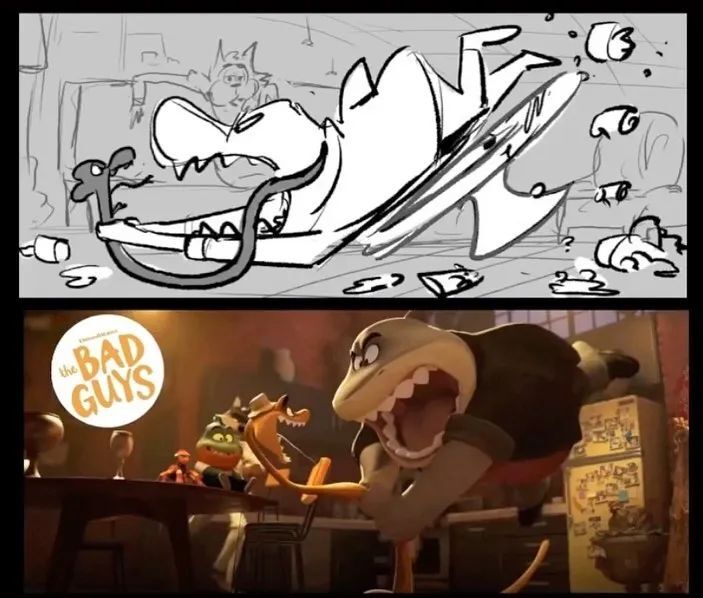 電影的開場晚餐場景,靈感來自昆汀的《低俗小說》,它是夢工廠動畫史上最長的一次鏡頭。它持續兩分二十五秒七幀。