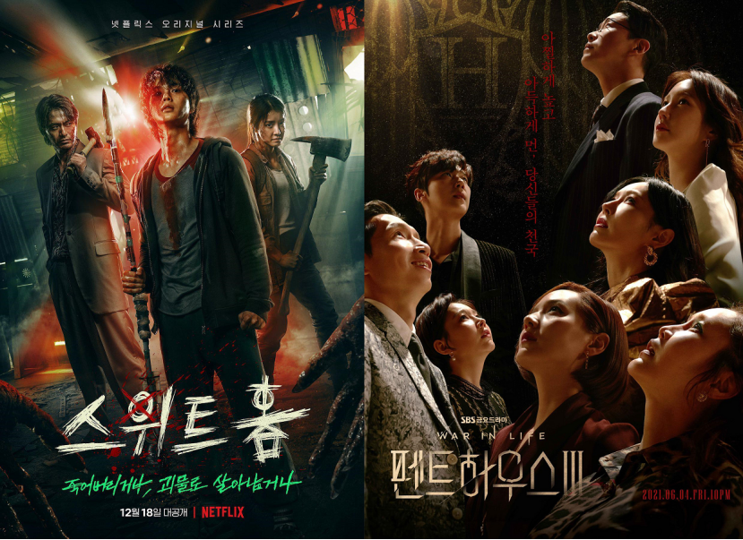 Netflix兩部韓劇《魷魚游戲》(左)《少年法庭》(右)就是這種理解錯位,經常導致在項目制作的溝通過程中形成惡性循環,一直做不到制片人想要的東西,最后項目就會無限期擱置。在趙湘看來,“對標”某部韓劇,和“我想做成某部韓劇”,其實是兩件事情。“如果你為了想做成某部韓劇的樣子,去專門原創一個故事,這種就挺扯的。然后也有買了版權直接翻拍的,我也不太喜歡。韓劇基本不可直接移植,所以很難做出韓劇的樣子。”“你說韓劇的人設和故事做的有多好?其實都差不多。”編劇Ellen并不太認同趙湘的看法,她與河豚君展開對話之前,正在補兩部去年微博熱度不錯的韓劇,《達利和土豆湯》以及《心驚膽戰的同居》,前者是韓國三大臺之一KBS的都市愛情劇,后者是韓國后起之秀收費臺tvN的都市奇幻劇。《達利和土豆湯》的女主角完全沒有解決事情的能力,非常依賴男性角色的幫助,如果放在國產劇語境里是會被口誅筆伐的瑪麗蘇型,但編劇給了女主幾場高光情節,加上觀眾的韓劇濾鏡,就不在意瑪麗蘇的點了。《心驚膽戰的同居》是修煉幾百年的九尾狐男主意外被女主吸走元丹,為奪回元丹被迫同居的故事,不管放在國產劇里,還是東亞其他國家的劇中里,都是很常見的俗套劇情。不過Ellen也承認,隨機舉例恰巧是兩部情感戲,放在國產劇里就是主打女性觀眾的故事,如果是一些懸疑題材職場題材、男性觀眾多一些的強類型劇,確實會有故事性做得很好的,這就是在對標的時候需要注意分題材類型。“我們在做一部武俠劇的時候,一位大策劃用《甜蜜家園》(Netflix2020年出品喪尸題材漫改韓劇)對標,你能想象嗎?”責編小文在向河豚君講述經歷時難掩無奈。當她細問具體的對標部分時,得到了“一名男性在一棟大樓里升級打怪的結構很好”這樣的答復,對于這樣常見的男頻故事結構也要用韓劇對標,且基本是無效對標的“離譜”情況,小文已經見怪不怪了。左圖為Netflix韓劇《甜蜜家園》;右為SBS韓劇《頂樓》同樣的“離譜”事件,身為“乙方”的編劇云帆更加熟悉,她與團隊在寫一部帶有特殊職業性質的類型劇時,制片人提出對標《頂樓》,讓她大感震驚,理由是《頂樓》很“爽”,在按“要求”修改一版劇本后,制片人起初很滿意,但最終也沒能通過評估,仍舊做回了原來的樣子。為什么會出現這么多“離譜”對標?制片人到底是按照什么標準來決定對標?“簡單來說,哪部劇在中國社交平臺做營銷了,她們就選哪部劇。”編劇云帆直言,“比如我們之前有個項目,是青春、校園、甜寵標簽的,但正好最近社交平臺在營銷《夏娃》《安娜》這樣的大女主復仇故事,制片人就會說,現在不流行純甜的故事啦,要做黑蓮花啦。其實黑蓮花在網文里早就有,只是因為營銷讓她們有了這種錯覺。”最近看什么火了就想做什么,這是河豚君此次對話中得到的一致反饋。制片人本身在做項目的過程中也會涉及到項目營銷的內容,應該能夠理解劇集營銷的邏輯;可是韓劇當前的時候,大部分制片人卻無法辨別劇集本身是因為質量好還是單純營銷造勢。這一點令編劇Ellen哭笑不得。Ellen也提到了兩個造成這種情況的重要原因:一是對劇集質量沒有獨立的判斷,二是閱片量極少。而第一種原因有很大一部分是第二種原因造成的。“大多數制片人不是閱片量少的問題,他們可能壓根就不看劇。”編劇云帆補充。國產劇與韓劇有著制片人中心制與編劇中心制的本質區別,國產劇制片人中極度缺乏內容型制片人,而充斥了資源型制片人,也就是所謂的“Social型”制片人,當他們把主要的時間精力放在拉攏演員、導演、平臺資源的時候,自然沒有時間去看片。閱片量貧乏導致一缺乏判斷、二只能通過所謂的“熱劇”“爆劇”和“營銷劇”來做標準,甚至連這些劇也沒看過,只在社交軟件上刷到過碎片化傳播的片段。左圖為Coupang play韓劇《安娜》;右為tvN韓劇《夏娃》對話中,編劇云帆與Ellen向河豚君“訴苦”,一個影視項目的前期孵化和劇本周期一定不會短,做個一年半載是經常的事,在這個不短的時間里,制片人一旦看見一個爆款、熱劇甚至只是自己喜歡的劇,就會隨時拿給編劇“對標”,想要這樣的效果,很多都是和在做的項目完全不同題材或者不搭邊的東西,而編劇必須跟著制片人的“對標”進程不斷修改劇本直至面目全非。“有些題材其實我們早就寫過了,被制片人要求左改右改,三年過去了,同題材韓劇都已經播了,又被制片人拿著韓劇來讓我們對標,結果不過是回到了原點,但別人已經寫過了,那如果三年前就按照一開始的拍,是不是我們的劇就會比韓劇更早播出呢?”河豚影視檔案再問到他們,國產劇制片人是否會過于依賴“韓劇”?編劇云帆笑言,“不會,過段時間營銷號可能就會開始營銷美劇或者臺劇了,到時候對標劇又會變成美劇臺劇了。”“很久以前我們在做項目闡述的時候是很避諱和同題材劇集比較的,說我們像這個劇像那個劇,但現在我們會直接扔給他說,我們就做成這個劇這樣、那個劇那樣,直給,不然他們想象不到。”編劇云帆似乎找到了和甲方溝通的規律,“我們寫宅斗,就和制片人說是《雙面超女》(2021年韓劇收視Top5),倆女的在家互抽300個巴掌,制片人就喜歡了。”身在編劇崗位,對這種“就愛對標橋段的行為”感受至深,因為制片人本身接收的也是碎片式片段,反饋到內容端也是碎片式