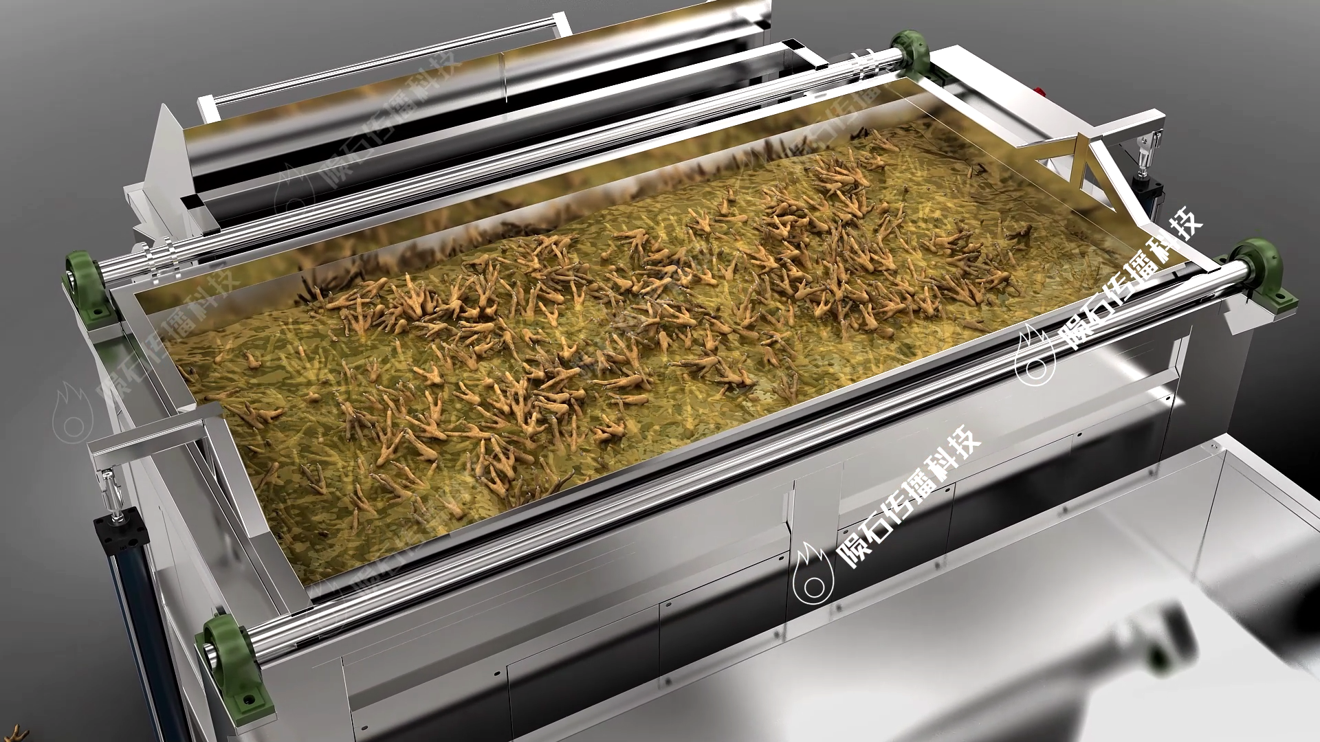 三維特效制作是我們賦能的關鍵。我們運用先進的軟件和技術,打造出逼真的食品機械模型和震撼的動畫效果。在雞爪油炸動畫中,特效展示了蒸汽的力量和雞爪的美味,吸引客戶的關注。