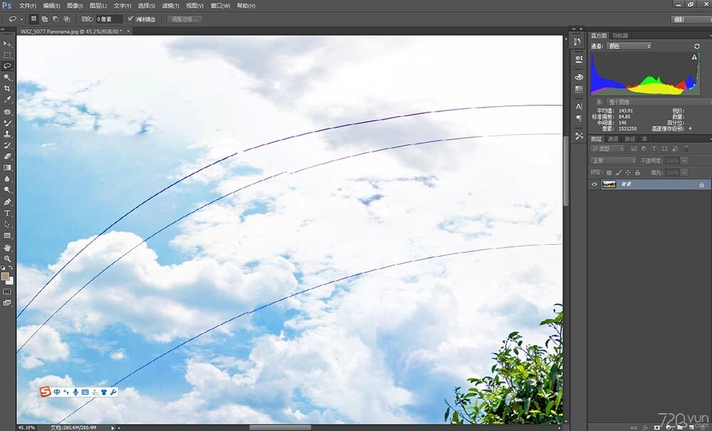 四、將合并后的圖像在ps文件中存儲后就能得到將錯位處修復好的全景成品圖。