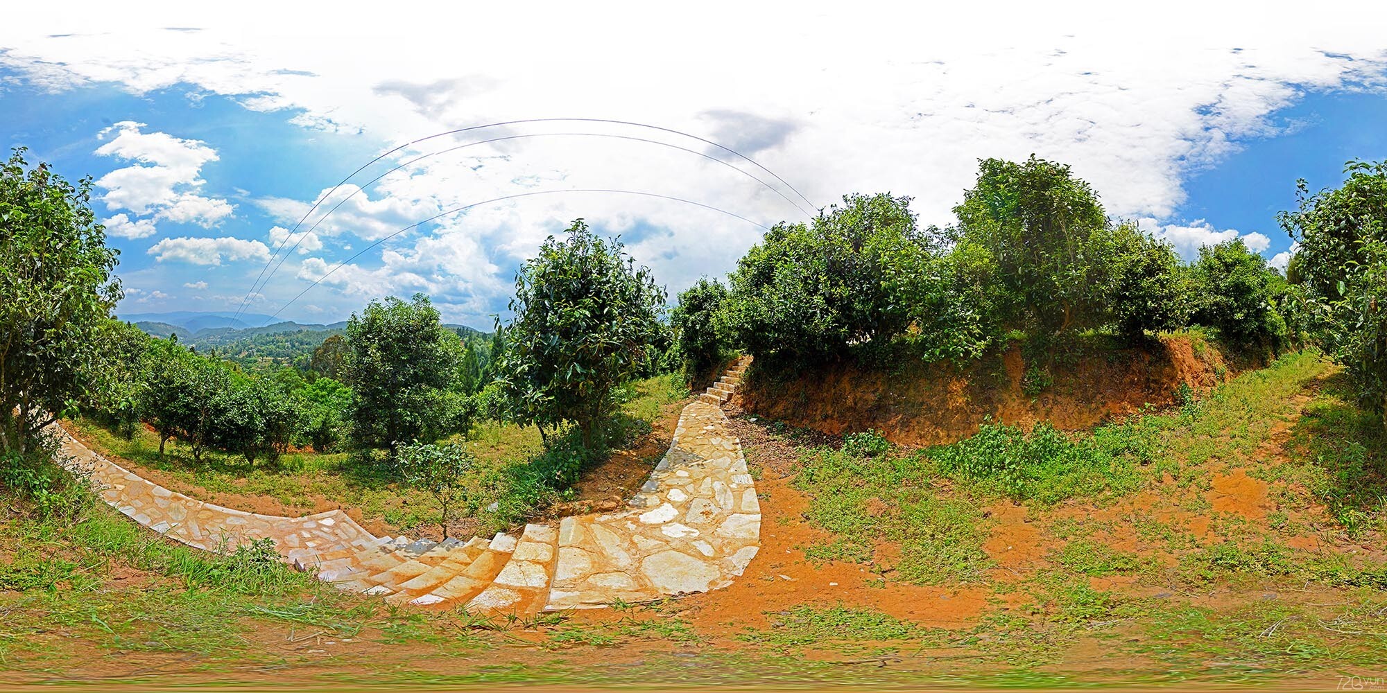 在全景的拍攝中,由于一些不可控因素太多,風吹草動和腳架的位移都會導制一些錯位的出現。如室內天花板上的裝飾線條,室外的一些電線、樹桿等。此類錯位和云臺節點沒有太大關系,只能通過后期在pS中處理修改。