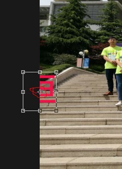 11、 然后執(zhí)行步驟4 ,插入圖片或是文字,但是要求在畫布中心點處,按Ctrl + T 鍵, 再按 Shift 鍵讓其扁一些(這里的圖片或是文字是顯示在上軸部分),扁的程度和整體的文字或是圖片保持一致(如果不讓其扁一些,全景圖顯示的相應(yīng)內(nèi)容會變得特變長,效果很難看)。然后執(zhí)行步驟5 。