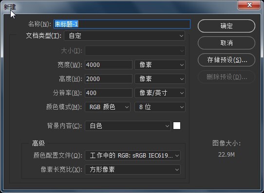 1、 新建一個 PS 操作項目文件,因為是全景圖,所以要求寬高比保持在 2 : 1,建議分辨率在600 DPI以上,這樣可以保持清晰度,但是這樣的分辨率要求相應(yīng)使用的圖片分辨率也要在600 DPI左右,這樣看起來效果才和諧,清晰度高。(如圖設(shè)置)