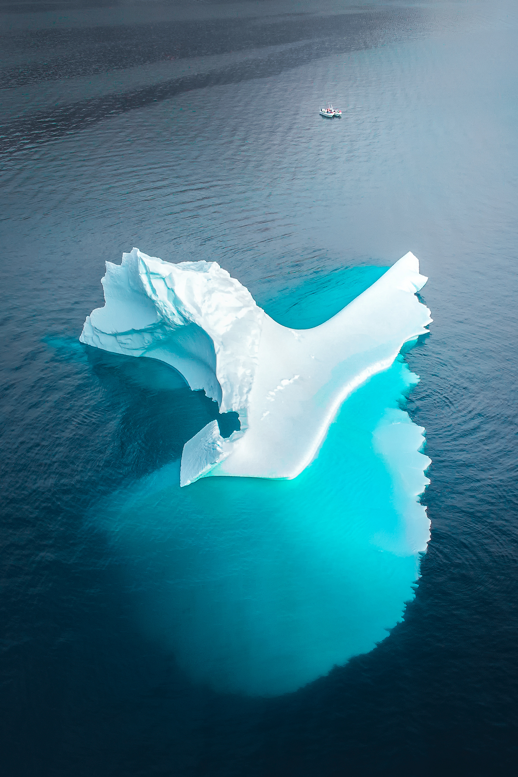 上面這張原圖,是用無人機航拍的冰山,很有意思,抓怕到了冰山底部隱藏的那些部分。