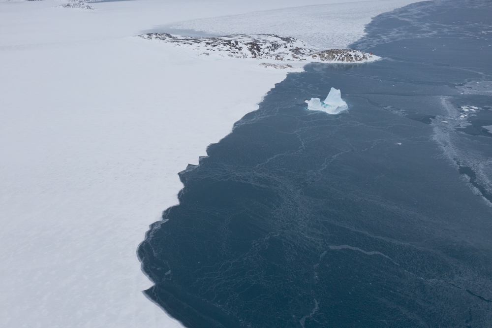 后面的陸地,提供了一些背景信息,比如冰山位于海岸邊,但這些并不是很有趣或者很重要的信息。因此后期思考時決定進行二次構(gòu)圖,裁掉多余的部分。