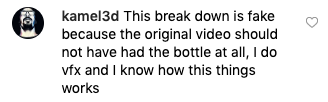 “breakdown是假的啦,原視頻連瓶子都不應(yīng)該有,我就是vfx人兒,門兒清!”