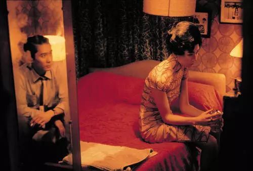 當然,他的這種全景深是和特寫鏡頭配合著使用的。當他想讓你看清一個人臉上的表情和眼神的時候,你不可能會錯過。但是,整個電影的調子始終是游離的,梁朝偉的發型和張曼玉的旗袍,無時無刻的不在提醒你,這是昨日黃花,縱然美麗,依舊是一個遙遠的童話。