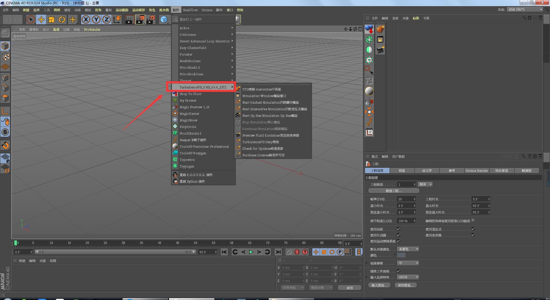 2、重啟C4D軟件,在插件欄中選中下方紅框插件,即可使用TFD煙霧插件;