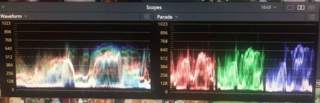 waveform和分量示波器,其實是一個東西,一個高清的畫面是1920×1080,那么橫坐標就是1920的部分,縱坐標就是畫面的RGB分布情況。