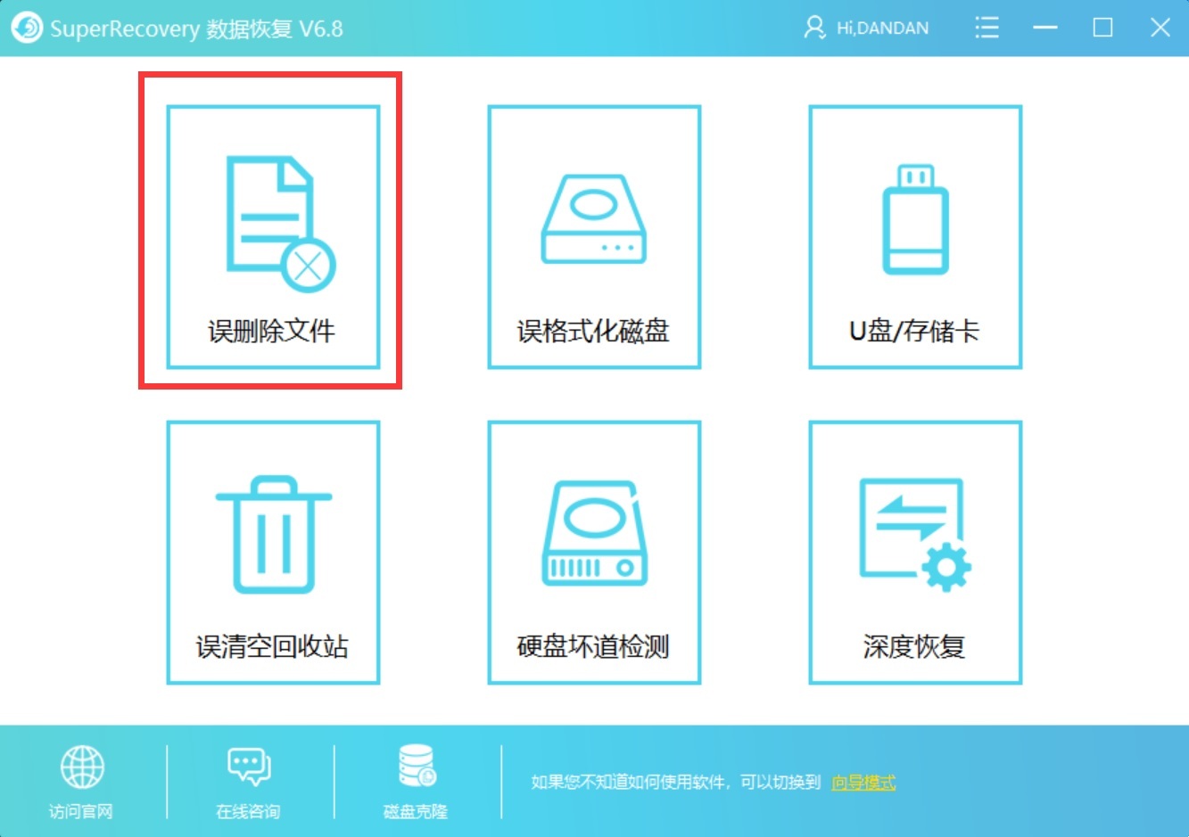 進入到superrecovery當中,選擇恢復功能:誤刪除文件;