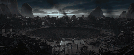 在電影《哪吒魔童降世》預告片中,有很多畫面插入了黑場鏡頭作為過渡畫面,給人一種看一半留一半的感覺,勾起觀眾對于故事情節的好奇心。