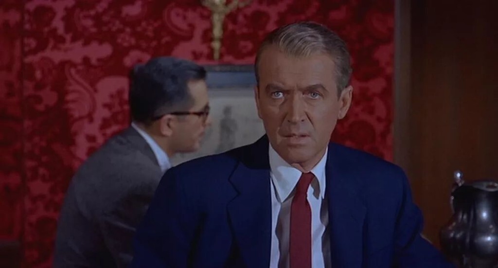 在《迷魂記》中,詹姆斯·斯圖爾特飾演的退役警探約翰·弗格森渾身通紅,女主角瑪德琳占據了他的心。綠色作為主色,一直主宰著他的眼睛。他無論在哪都能看到瑪德琳的身影。