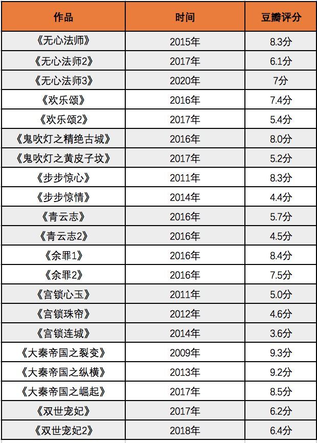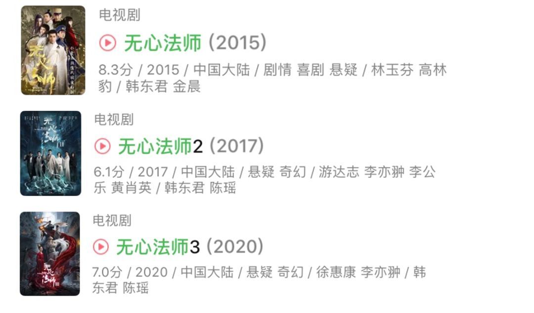 如今第三部,《無心法師3》在口碑上有所回轉,豆瓣7.0分,然而與第一部相比仍然相差不少,并且觀眾、粉絲對于續集中的劇情頗有不滿。可以說,具有爆款基因的《無心法師3》是唐人打出的一張大牌,粉絲情懷、懷舊心理都可能助力續集出圈。然而現在的情況來看,并不容樂觀。
