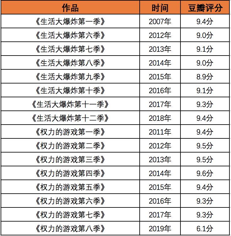 在作品獲得一定影響力之后,拍攝續集成為延續并強化IP,實現品牌效應的最佳途徑,既為影視市場帶來更多活力,又能實現自身內容的可持續性傳播。因此但凡爆款劇,大多有續集。有些是根據IP改編提前策劃,有些則是因為第一部火爆,重新啟動續集項目。2015年,改編自尼羅小說的《無心法師》可謂是一匹“黑馬”, 雖然出身小眾IP,但憑借高品質、“非五毛特效”獲網友認可,加上“自來水”的推波助瀾,《無心法師》被推上了網絡自制劇的潮頭。網友們評價也很高,更是吊打當時大投資大IP的《盜墓筆記》,“演員演技特別自然,特技場景都良心!《盜墓筆記》特效五毛的話,無心有五塊吧!”因此,兩年之后,改編自小說第二、三部的故事,把降妖除魔與抗日背景下的國仇家恨聯系起來的《無心法師2》上線,原本是想再續爆款,然而最終以6.1的評分收官。對于國產劇來說,不僅是《無心法師》系列,大多國產續集大多表現都不讓人滿意,擺脫不了“一鼓作氣,再而衰,三而竭”的“魔咒”。我們總結了最近今年系列作品,單純從評分來看,幾乎每一部續作評分都呈現下降的趨勢,并且續作一般都在3季以內。甚至《愛情公寓》系列、《還珠格格》系列、《家有兒女》系列等老牌電視劇均出現續集口碑下滑的情況。即使像《大軍師司馬懿》《瑯琊榜》第二季口碑不落,但續集的播放量往往又大幅下滑。《軍師聯盟》以70.82億的播放量、8.1分的評分成為2017年的爆款網劇,續集《虎嘯龍吟》在口碑上依舊延續前作,評分高達8.4分,但該劇的播放量僅有48.55億,和前作相差超過20億。同樣情況再看美劇,動輒七八季,且每一季都在平均水平以上。就拿《生活大爆炸》以及《權力的游戲》為例,基本都在9.0分左右上下有輕微浮動,不僅總體質量很高,且浮動很小(除《權力的游戲8》爛尾導致評分降低之外)。此外,觀看人數也呈現呈遞增趨勢,《生活大爆炸》第一季的收視人數僅840萬,第十季達到1899萬人。其中,該系列的最高收視人數達到了2040萬。由此可見,與國外的續集作品相比,國內無論是IP改編,還是原創作品的續集總體都比較薄弱。