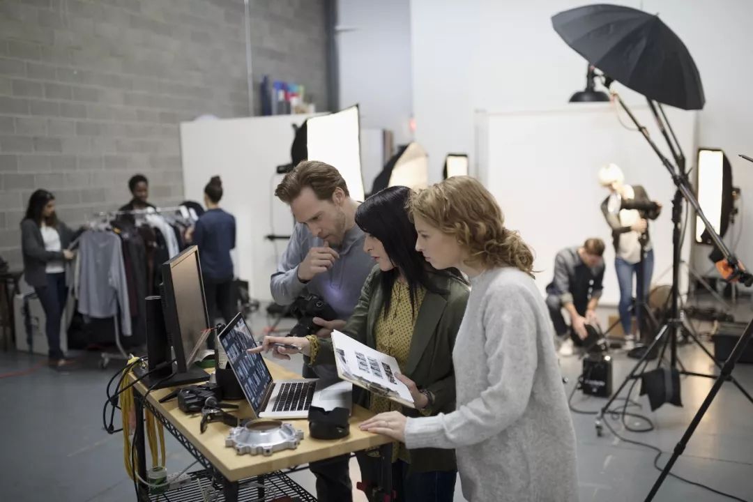 商業(yè)攝影師在現(xiàn)場不僅僅是按快門這么簡單,布置燈光,與工作人員,與模特的溝通,檢查成片,一個都不能少。
