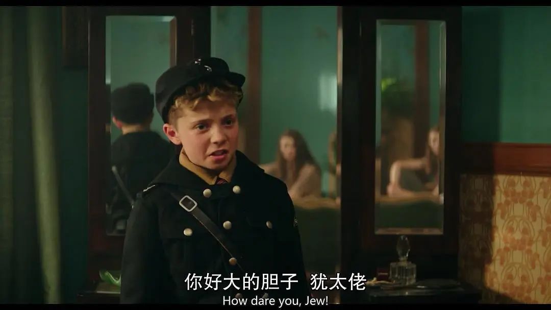 正因為女孩的出現,讓原本堅定的喬喬開始產生了懷疑。即便他依舊是納粹追隨者,但他并沒有揭發猶太女孩的身份,反而和她成為了朋友。在與猶太女孩艾莎的接觸中,從最開始的敵意轉化成對猶太民族的好奇和尊重,他與猶太女孩的關系經歷了敵對到友情、心動再到親情,喬喬甚至愛上了艾莎。看著喬喬逐漸改變,艾莎也拋棄了長期占據在她腦海里的仇恨,對他說:“喬喬,你不是一個納粹,你不過是個穿著納粹制服的十歲男孩。”