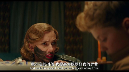 艾莎的出現讓喬喬改掉了偏見,但喬喬身邊還有一位很了不起的女性,那就是斯嘉麗·約翰遜飾演的媽媽羅茜,她一直在潛移默化地對喬喬產生影響,教會了喬喬去感受愛、信任和自由。