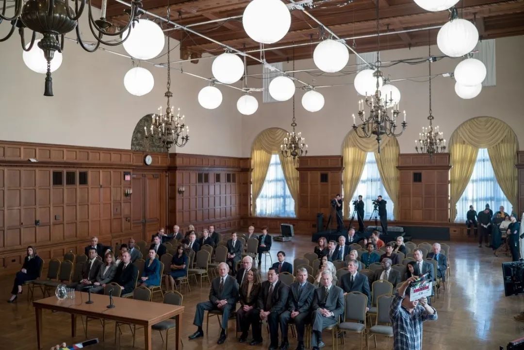 “律師事務所真是個好地方,”海因斯說,“我們在真實的塔夫特律師事務所里拍攝,拍攝用的會議室和羅伯的辦公室也都建在同一棟大樓里,比真實的塔夫特辦公室高了10層?!?/p>