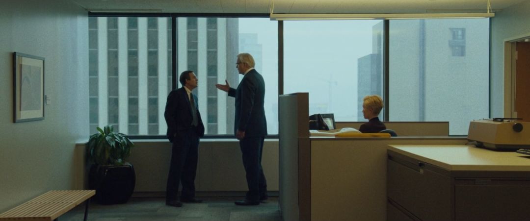 與拉克曼一起工作了幾十年的燈光師約翰·德布勞解釋說,辦公室里的大部分照明都涉及到窗戶光的控制,要么使用ND,要么使用現有的窗簾或是利用辦公室里的熒光燈,增加室內的亮度來補充光線。