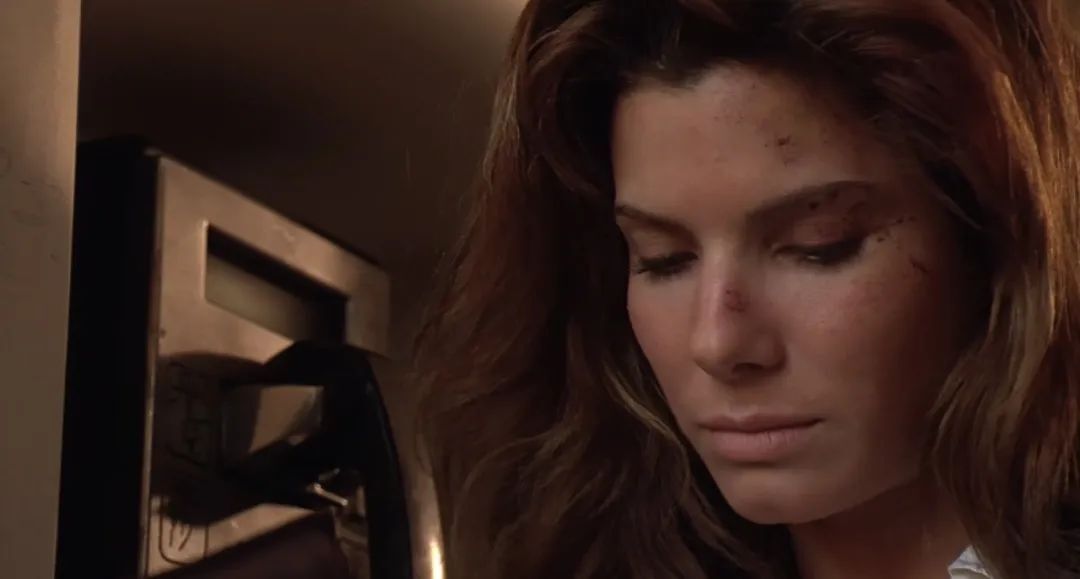 這是一件非??植赖氖虑?,但從另外一個(gè)層面來理解,這也是一件很諷刺的事情。這時(shí),一個(gè)大特寫表明了桑德拉·布洛克內(nèi)心的恐懼。