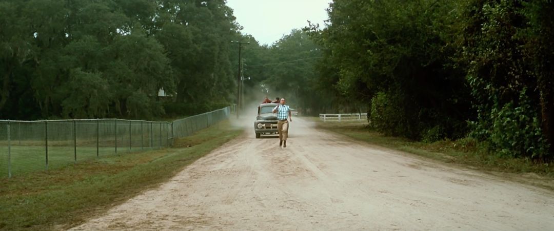 這種方式與正面跟拍類似,卡車和攝影機(jī)都需要配合阿甘的運(yùn)動(dòng)。與正面跟拍不同的是,背面跟拍時(shí),卡車和攝影機(jī)位于阿甘的背面。