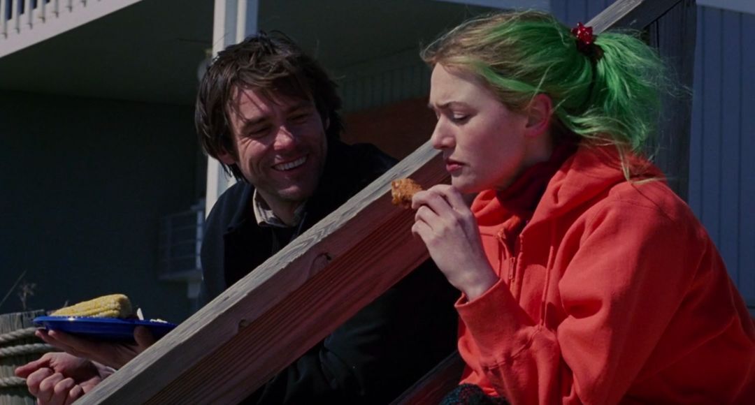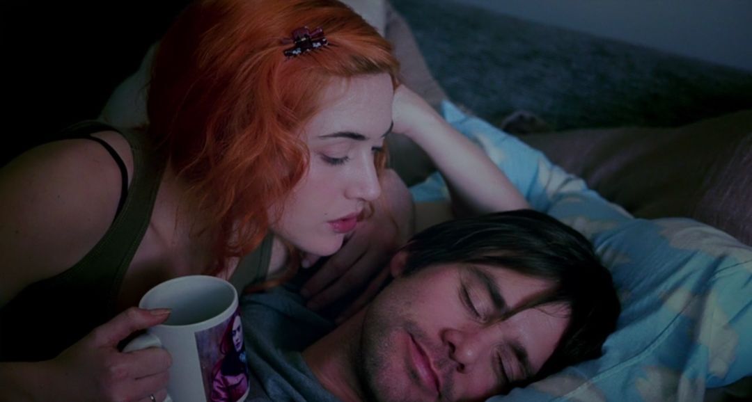 由金·凱瑞和凱特·溫絲萊特主演的浪漫喜劇《曖曖內含光》中,喬爾(金·凱瑞飾)與克萊門汀(凱特·溫斯萊特飾)正在面臨情感危機。