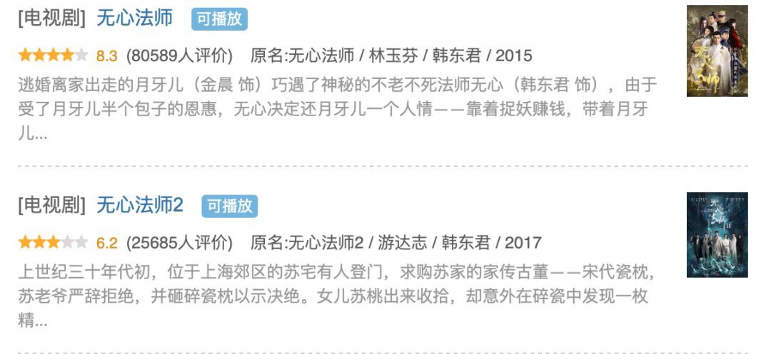 比如2015年大熱的網(wǎng)劇《無心法師》,本應(yīng)該順熱度而為乘勝追擊,但可惜的是,這部劇兩年后才推出第二季。政策監(jiān)管和題材紅利已經(jīng)不可同日而語,劇集的關(guān)注度和口碑自然大大降低。