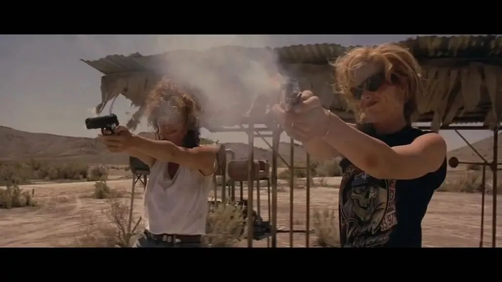 在對話場景中,當只采用雙人鏡頭時,有一點要注意,即觀眾會對這場戲進行“剪輯”,他們會根據對話內容或人物的表演,在兩人之間來回切換自己的關注點。看上去其中的差異似乎并不大,但可能會嚴重影響到觀眾對故事的投入。如果組合使用不斷收縮景別的鏡頭,按照故事進展將正在發生的、有敘事意義的事情剪輯到一起,觀眾就會處于被動接受的狀態。而倘若畫面保持不變,不進行任何剪輯,觀眾就會變得更主動,會不斷地去挖掘畫面中的戲劇張力(著名電影理論家安德烈·巴贊稱之為“場面調度美學”)。吉姆·賈木許在其影片《神秘列車》的“遠離橫濱”一段中就使用了這一策略,幾乎全部使用了雙人鏡頭。該段落講述了日本小年輕(永瀨正敏、工藤夕貴飾)在藍調和搖滾圣地田納西州孟菲斯市游覽的故事。其中幾乎每個鏡頭都是雙人鏡頭,意味著兩人的關系很緊密(盡管他們在一起時經常爭吵),在陌生國土上的兩個人有著相似的經歷和感觸。由于沒有切換到主觀視角或特寫鏡頭,而主要是通過雙人鏡頭來講述他們的故事,在兩人的動作、表演過程中,兩人最真切的關系逐漸得以展示。與其他包含多個人物的鏡頭一樣,通過人物的肢體語言、走位和構圖,雙人鏡頭可以建立起人物之間的戲劇關系。但由于只有兩個人,雙人鏡頭可以直接展示出人物之間的某種敘事聯系。這個雙人鏡頭截自導演雷德利·斯科特的《末路狂花》。影片中,在其中一位女主角殺死一名試圖施暴的男子后,兩位女主角都成了警方的通緝犯。經歷一番逃亡之后,通過這個雙人鏡頭展示了兩人又找回了曾經的關系。畫面中,露易絲(左側,蘇珊·薩蘭登飾)是個曾受過男人羞辱的酒吧服務員,而塞爾瑪(右側,吉娜·戴維斯飾)是個宅在家里一直受丈夫控制的家庭主婦。此時,她們已經意識到這個男權社會的種種丑惡,并轉變成了剛毅的、“來自地獄的馬子”(影片中的對白)。從人物的肢體語言,到兩人在畫面中的位置,這個鏡頭就是要展示兩人的遭遇是多么相似。在這樣景別的雙人鏡頭中,人物的肢體語言展示了劇情的發展,以及人物間的關系。從兩人相同的姿勢和面部表情似乎看到了正義,兩人已從故事剛開始時的樣子脫胎換骨般地走出來了。畫面中,人物略微形成了一點角度,強調了Z軸的延伸,畫面更具層次感。畫面采取開放式的構圖,人物的站位將畫面空間延伸到了畫框之外。塞爾瑪比露易絲稍微大了一些。這符合希氏構圖法則。故事發生到這一刻,比起露易絲,塞爾瑪的個性有了更大的變化,一個曾經被動的、呆呆的家庭主婦變得更為果斷(其服裝的變化也能說明這一點)。畫面中,塞爾瑪還位于焦點之中,與左側的露易絲構成了一條斜線。自然光會限制我們的照明設計,但經過角色的位置調度,畫面的沖擊力還是很強的。在這個雙人鏡頭里,人物特意逆光而立,太陽成了背光,使人物可以從背景中凸顯出來。人物的排列有一點角度,但基本都位于三分構圖的興趣點上,給人物留出了適當的視線空間,獲得了較為生動的構圖。拍攝角度略微上仰(從露出屋檐的底部可以看出),強調此時兩人的自信和果斷。值得注意的是,鏡頭并沒使用超低的角度來獲得此效果。稍微下降的角度成為了展示這種效果的其他構圖元素的補充,而沒有起到主要作用。這個雙人鏡頭的景深較大,整個環境成為了一體,讓觀眾將環境與人物建立起了關系。在這里,周圍的沙漠對敘事有著重要的作用(電影的第一個鏡頭就是沙漠里的一條高速公路),因為沙漠就是大部分劇情發生的地方,同時也是一種象征(空曠、廣袤、人跡罕至、艱苦,以及西部片的特點等)。由于雙人鏡頭可以有不同大小的景別(從中特寫到遠景,任何景別都可以),所以要根據影片故事的特定需要來選擇鏡頭焦距——我們希望讓觀眾看到人物間存在何種的關系。