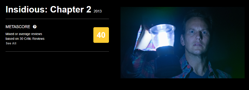由溫子仁執(zhí)導、于2010年上映的《潛伏》在全球收獲了9900萬美元的票房,從票房上來看尚且是一個不錯的商業(yè)成績,但在專業(yè)影評網(wǎng)站mtc上,本片僅收獲了52分的評價,即使在以普通觀眾為主的imdb上,影片也僅僅取得了6.7分的及格分。這一情況同樣在《潛伏》續(xù)集中上演,2013年上映的《潛伏2》卷土重來,最終取得了1.62億美元的票房,然而影片在mtc和imdb上分別僅獲得了40分和6.6分的評價。票房的上升卻相應帶來了口碑的直線下滑,這也是過去大多數(shù)恐怖片乃至恐怖片續(xù)集所面臨的一致處境。