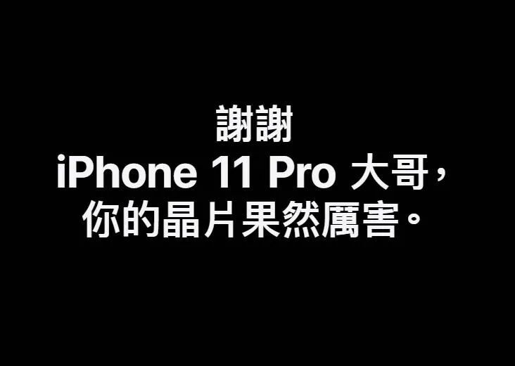臺灣話版本:“謝謝 iPhone 11 Pro大哥,你的晶片果然厲害”,iPhone SE作為小弟對iPhone 11 Pro的敬佩與感激。