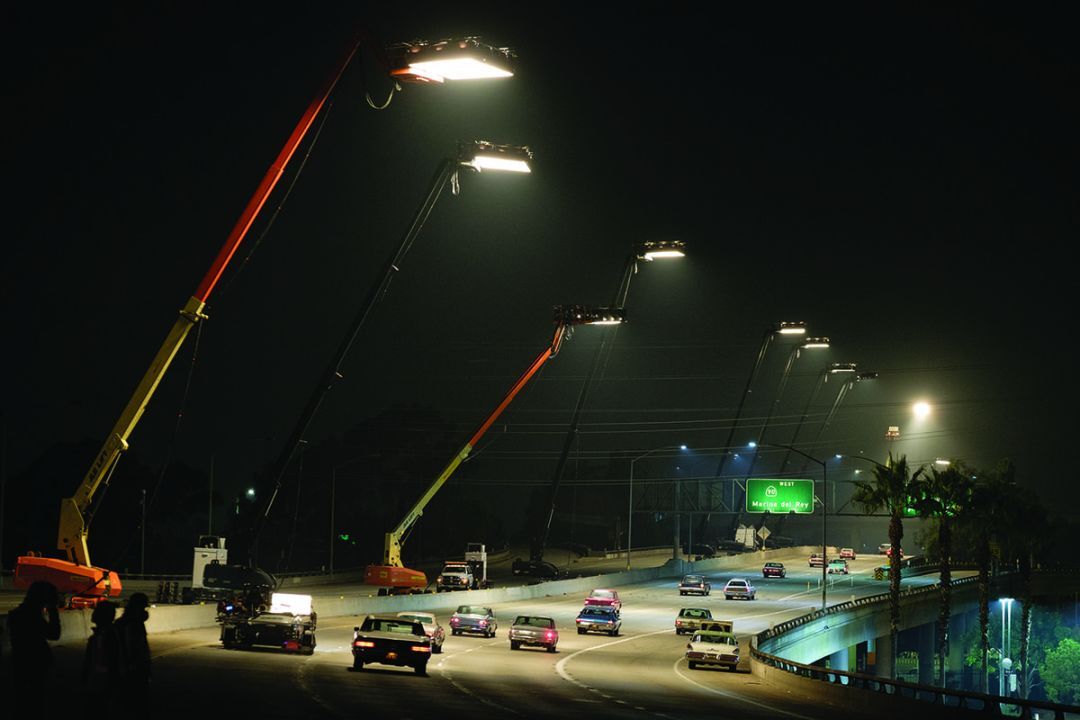伊恩:最大的照明裝置是在Marina del Rey高速公路上,大約有四分之三英里,公路關閉了一個晚上(為了拍攝布斯開車回家的部分)。