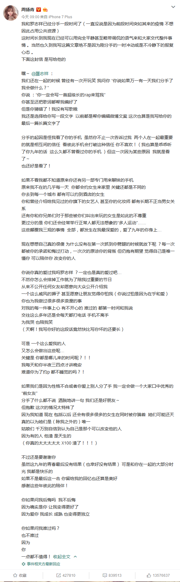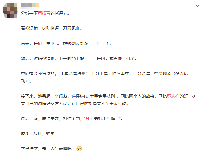 從周揚青公布分手戀情后