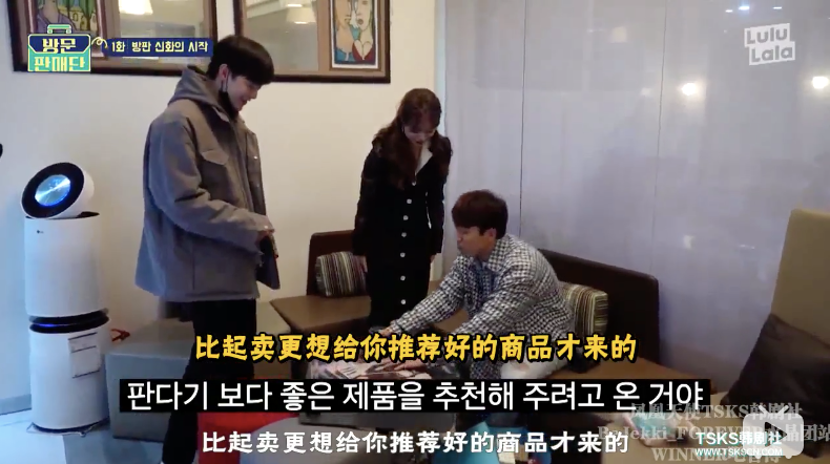 相比于電視臺節目,韓國網綜廣告植入的空間較大,更有利于完成金主的帶貨指標。近年來的兩檔微綜藝《訪銷少年團》和《訪問銷售團》,都采用了職業體驗的模式,讓明星化身銷售員上門推銷,在這個過程中達到帶貨目的。