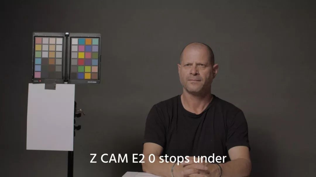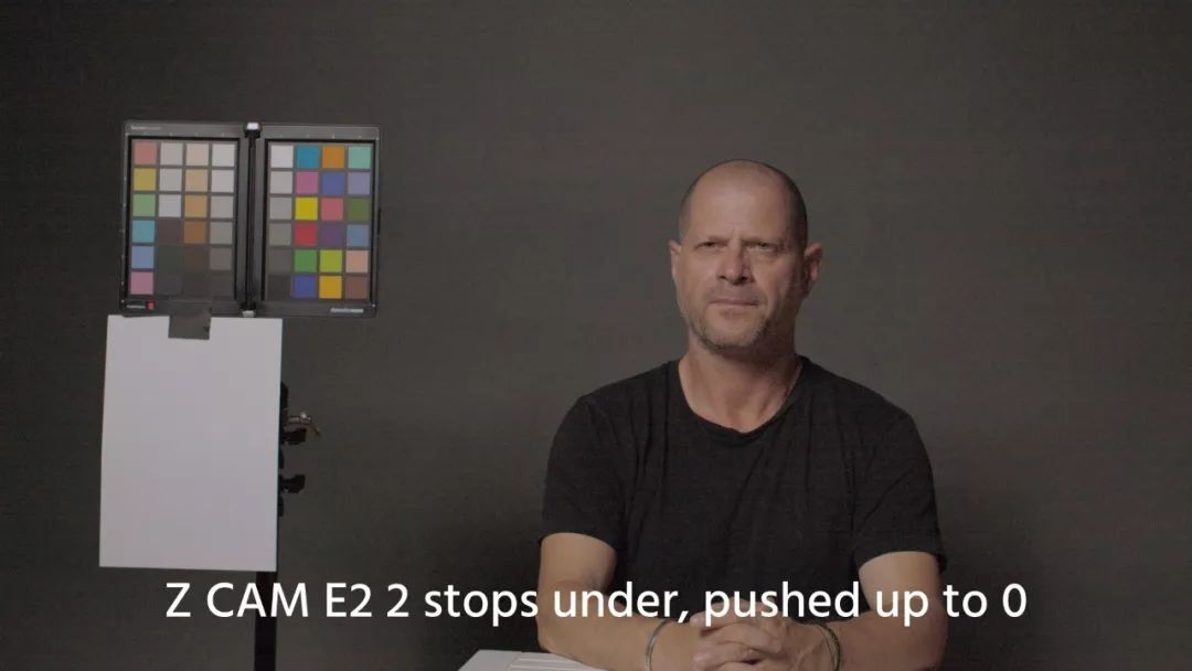 很長(zhǎng)一段時(shí)間,我都在使用中國(guó)制造商Z CAM生產(chǎn)的Z CAM E2攝影機(jī)。我曾用它搭配VAZEN Anamorphic 1.8 x 40mm T2鏡頭,在印度拍攝了一個(gè)小型紀(jì)錄片,它可以在全畫幅3696×2772下錄制ProRes HQ編碼。Z CAM一直在通過固件升級(jí),不斷的改進(jìn)這款攝影機(jī)的性能,就在最近,他們發(fā)布了一個(gè)名為ZRAW的RAW記錄格式。簡(jiǎn)單地說,ZRAW支持4096×2160 30fps記錄到內(nèi)部CFast卡中(60fps將在隨后的更新中提供)。理論上講,在有了新的RAW記錄功能后,Z CAM E2可以對(duì)標(biāo)競(jìng)爭(zhēng)對(duì)手BMPCC 4K。所以Cinema5D的評(píng)測(cè)員完成了這一次對(duì)比測(cè)試。如果你是我們網(wǎng)站的常客,可能已經(jīng)看過我們?cè)谥白鲞^的一些Latitude測(cè)試。Latitude測(cè)試,主要步驟是通過對(duì)攝影機(jī)過度或不足曝光,并在后期軟件中正常化回來,從而展示出攝影機(jī)保留顏色和細(xì)節(jié)的能力。在這個(gè)測(cè)試中,我們有一個(gè)標(biāo)準(zhǔn)的場(chǎng)景, Johnnie坐在色卡旁邊:標(biāo)準(zhǔn)攝影棚場(chǎng)景顯示的Z CAM E2在零曝光水平: Johnnie的臉部在60% luma的水平,白紙?jiān)?5% luma的水平。從基線設(shè)置(以最大60% luma曝光臉部,以最大65% luma曝光白紙)我們連續(xù)將鏡頭欠曝1檔,直到欠曝4到5檔,畫面完全損壞為止。然后,我們?cè)诤笃谲浖袑⑵錃w零,拉回到正常亮度水平,進(jìn)行觀察。軟件主要使用攝影機(jī)對(duì)應(yīng)的Camer RAW解碼軟件,比如用于解碼Z CAM E2的Z CAM VideoSuite,和用于解碼BMPCC 4K的DaVinci Resolve RAW工具。如上所述,ZRAW 文件需要使用獨(dú)立的ZRAW VideoSuite軟件來進(jìn)行解碼,你可以從 Z CAM 官網(wǎng)下載該軟件(目前僅限windows 10平臺(tái)使用)。