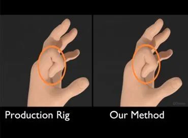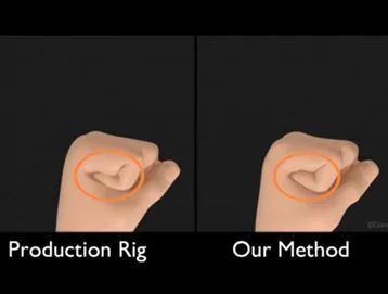 在這個系統(tǒng)中,動畫角色被分為充滿實體的有限元小塊,其控制骨骼則是實實在在的剛體, 動畫師通過操作這些骨骼來驅(qū)動有限元分析運算,產(chǎn)生自然的形變和無穿插的運動,動畫師的一個鼠標操作指令會被送到工作室內(nèi)的超算上進行運算后返回求解完的形態(tài), 整個來回在當時可以達到4~8fps。