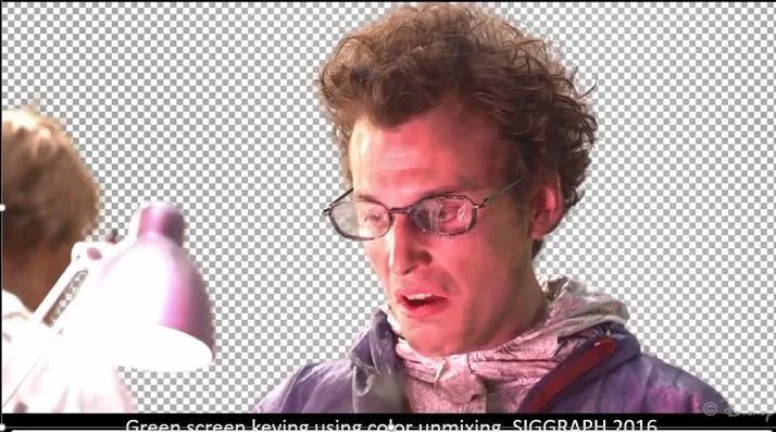 于是呢,在siggraph2016上,他們提出了一種基于color unmixing的自動綠幕摳圖方案, 論文題目是Interactive High Quality Green Screen Keying via Color Unmixing