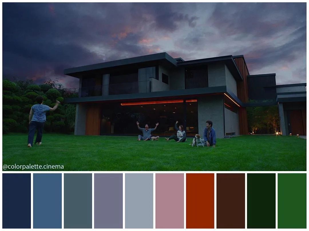 李河俊與美術團隊僅搭建了別墅的一樓,剩下的二樓部分選擇用CG 特效(一樓和庭院建在一個空地上;二樓和地下室建在影棚里)。別墅內的房間則是分開搭建,并依照角色個性來布置。緊扣電影情節,空間規劃也要仔細安排——好比說如果一個角色從樓梯上下來,坐在餐桌的人是否能看得到他?從美學角度來看,李河俊的目的就是要創造出專橫、帶有精英主義氣息、高傲的空間氣氛。
