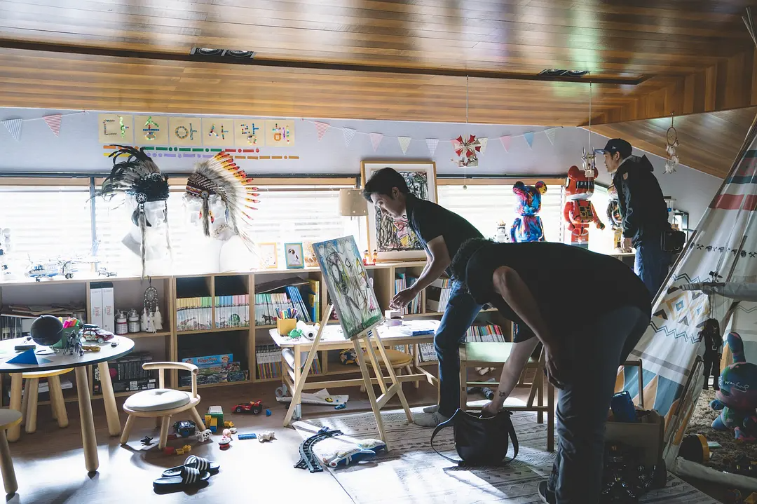 “樸先生的家是一個室外的搭景,過程中也考慮到了太陽的位置。”李河俊談到樸社長的家。“太陽的照射位置是我們在找地點最重要的一件事,同時我們必須記住我們想要拍攝的時間太陽的確切照射位置,同時搭配場景中窗戶的位置與大小。”