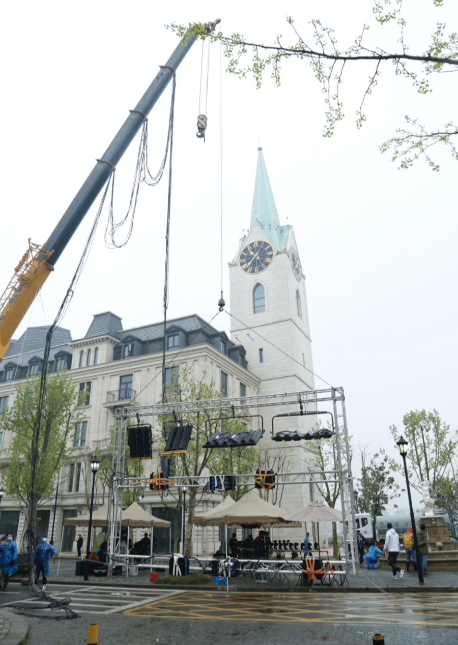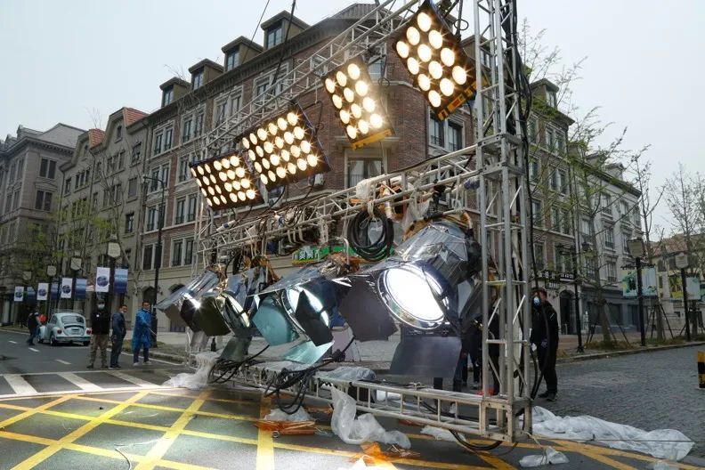 巨型燈光組+大吊車,在陰天模擬陽光