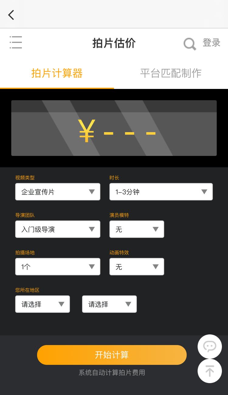 如果想估算一個視頻的價格,可直接在app上使用拍片計算器。廣告主拿到價格,可直接發(fā)布找人。