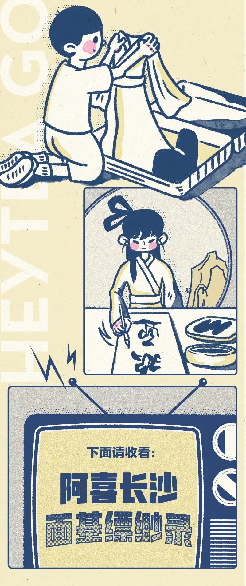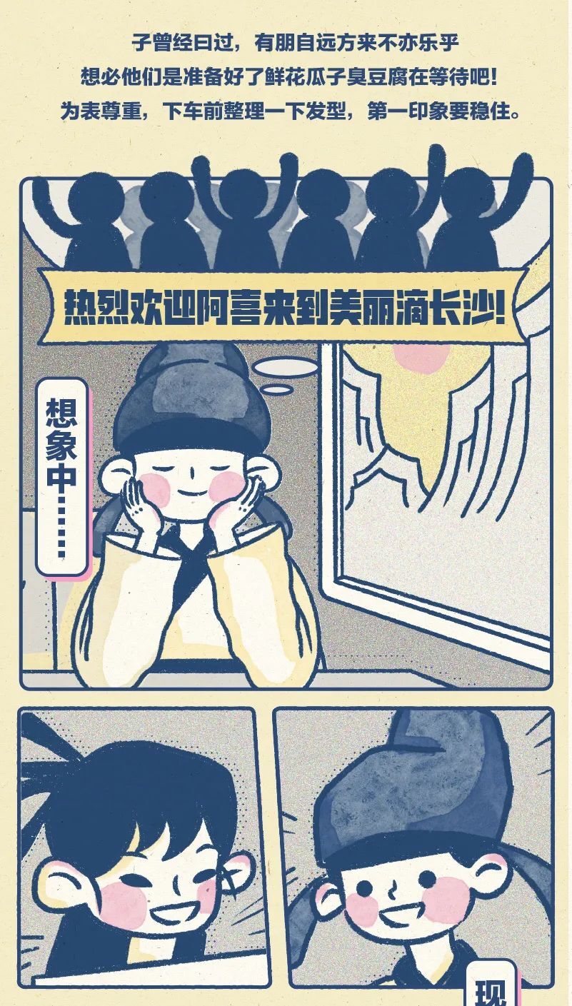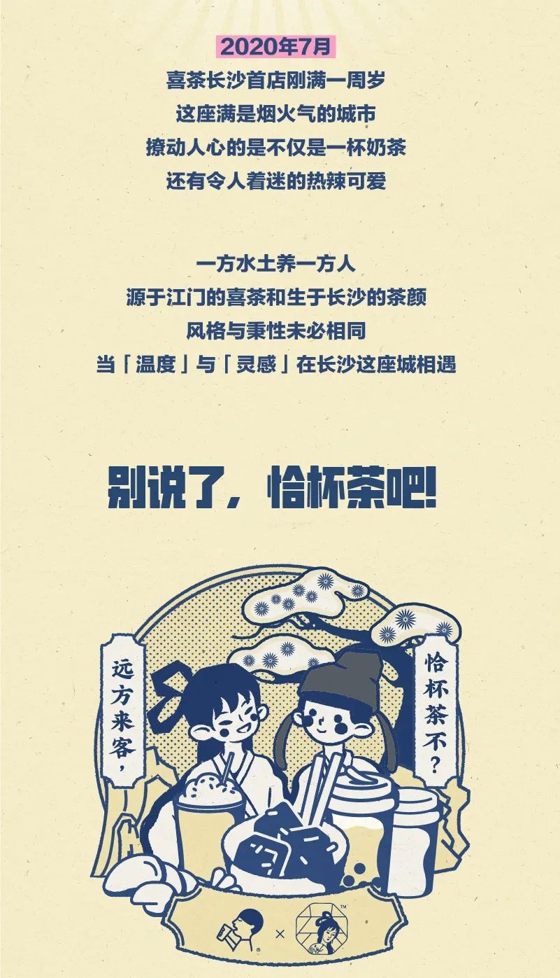 不僅拍了視頻,喜茶還畫了一則長圖文《阿喜長沙見聞錄》,記錄這次跨界的緣起,和這次觀光旅行的所見所聞。