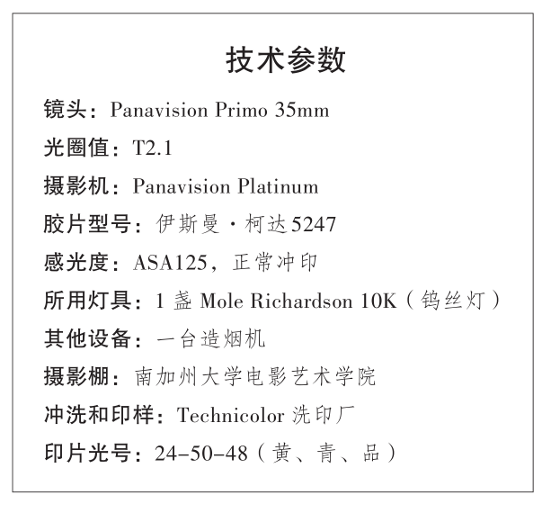 許多人也許會將杰夫·克羅嫩韋斯的黑暗風格與其早期為芬奇擔任操作員,或是跟隨達呂斯·康第拍攝《七宗罪》這樣的經歷聯系在一起。事實上,這似乎是一項家族事業——在他兩次贏得美國電影攝影師協會獎(ASC Awards)的父親喬丹·克羅嫩韋斯(Jordan Cronenweth)的職業生涯中,“少即是多”是一條重要信條。“使你獨樹一幟的,不是你決定打亮什么,而是你決定不打亮什么。(It’s not what you light, it’s what you don’t light that separates you from everyone else.)”在杰夫·克羅嫩韋斯的描述中,這是父親令他印象最為深刻的一句話。“年輕的攝影師總會犯這樣的錯誤——過度照明。其實你可以用最簡單的方式照明場景,仍然能得到很棒的結果?!痹谀霞又荽髮W的工作坊課程上,喬丹·克羅嫩韋思如是說。這場戲中,克羅嫩韋斯使用了一個巨大的背光,并在演員斜前方放置了一塊聚乙烯板,將光反射到演員的臉上