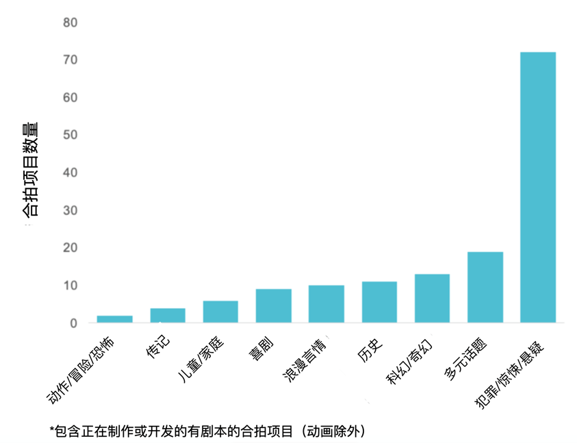 安培的數據顯示,目前最有可能進行聯合制作的劇本類型是內容具有廣泛適用性且傳播效果良好(比如犯罪題材)和大制作的作品(比如科幻或歷史題材)。